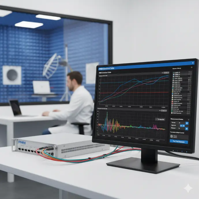 PMM Emission Suite est le logiciel d'exploitation centralisé pour tous les récepteurs de mesure PMM (séries 7010, 9010F, 9030, 9180, etc.). Cet outil allie haute performance et convivialité, transformant la complexité des mesures d'émission CEM en un processus clair et précis.